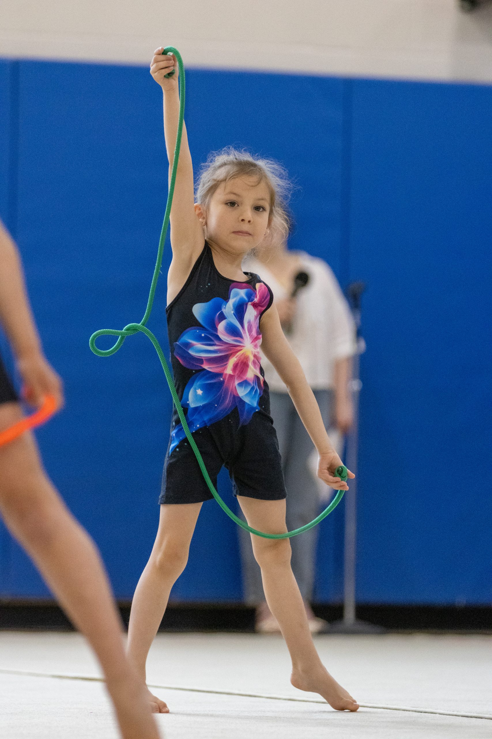 Our beginner classes introduce young gymnasts to the fundamentals of rhythmic gymnastics, focusing on basic techniques and building confidence.